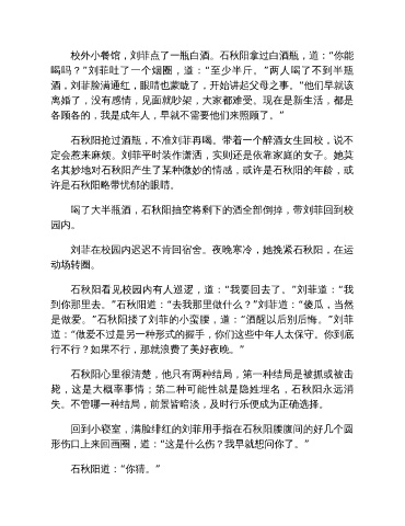 石秋阳抢过酒瓶,不准刘菲再喝。带着一个醉酒女生回校,说不