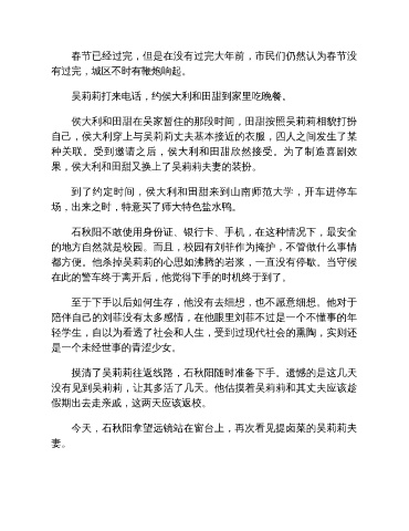 没有见到吴莉莉,让其多活了几天。他估摸着吴莉莉和其丈夫应该趁