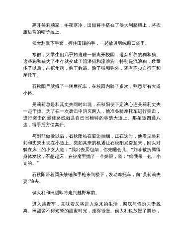 离开吴莉莉家,冬夜寒冷,田甜将手搭在了侯大利胳膊上,将衣