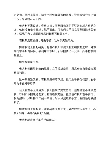 摩托车手后背猛砸。砸到第三下时,石秋阳腾出一只手,挥拳打在田