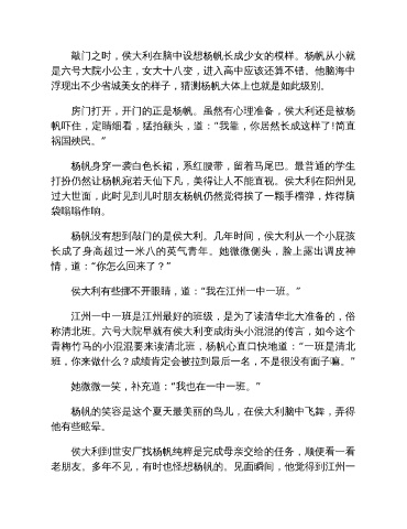 敲门之时,侯大利在脑中设想杨帆长成少女的模样。杨帆从小就
