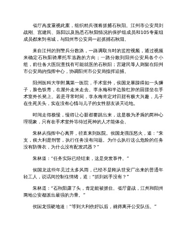 省厅高度重视此案,组织精兵强将抓捕石秋阳。江州市公安局刘