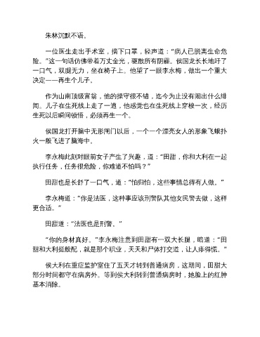 一位医生走出手术室,摘下口罩,轻声道:“病人已脱离生命危