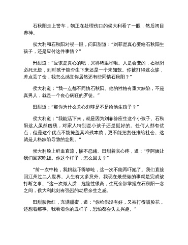 侯大利脸上鲜血直流,惨不忍睹。田甜着实心疼,道:“李阿姨让