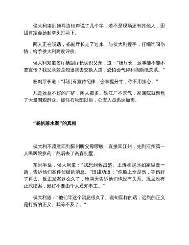 两人正在说话,杨副厅长走了过来,与侯大利握手,仔细询问伤