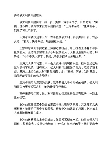 王涛母亲被扶起来以后,左手抓住侯大利,右手抓住田甜,对孙