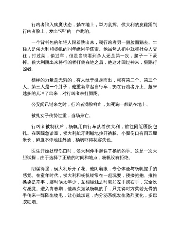掉。侯大利跳出来将行凶者打倒在地之后,他这才回过神来,狠踢行