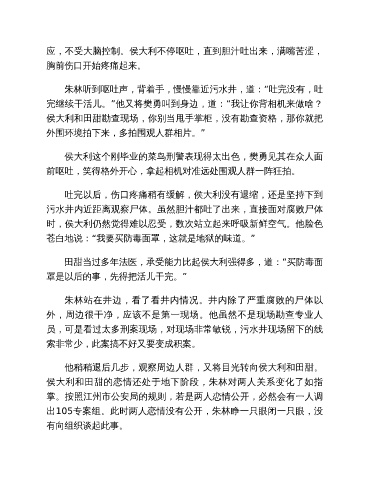 朱林听到呕吐声,背着手,慢慢靠近污水井,道:“吐完没有,吐
