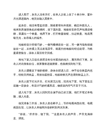 衣人对此很有自信,就算警察进屋搜索,也很难找到地下室。