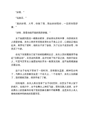女子如抓到最后一根救命稻草,拼命拿出所有本事,侍弄得灰衣