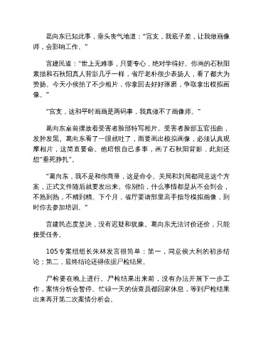作,案情分析会暂停。忙碌一天的侦查员都回家休息,等到尸检结果