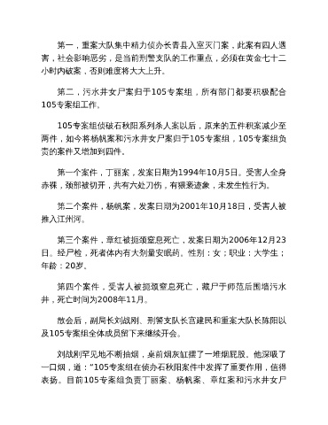 两件,如今将杨帆案和污水井女尸案归于105专案组,105专案组负