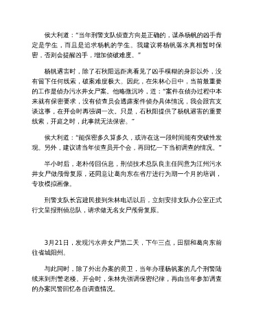 现。另外,建议请当年侦查员开个会,再回忆一下当初调查的情况。”