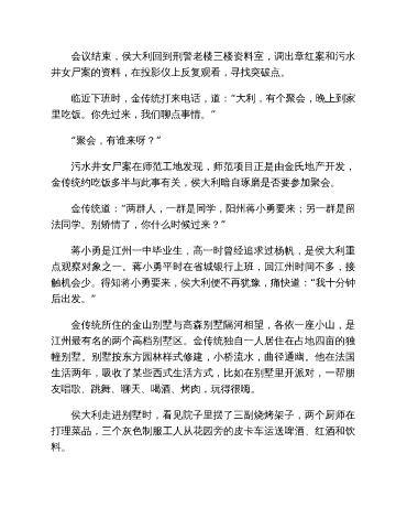 会议结束,侯大利回到刑警老楼三楼资料室,调出章红案和污水