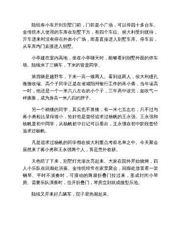 陆续有小车开到别墅门前,门前是小广场,可以停四十多台车。