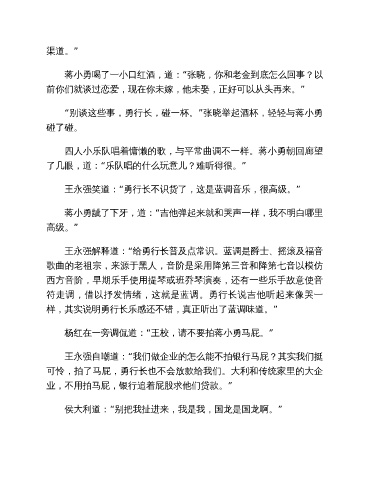 “别谈这些事,勇行长,碰一杯。”张晓举起酒杯,轻轻与蒋小勇