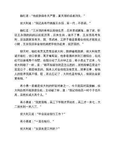 聊天时,杨红有意无意靠近侯大利,胳膊碰着胳膊。侯大利有意