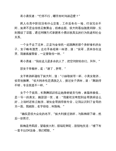 女子将酒杯递给了侯大利,道:“小妹敬侯哥一杯。小美女敬酒,