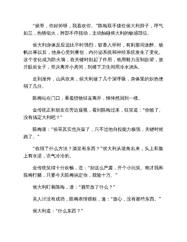 侯大利身体反应远比平时强烈,软香入怀时,有刹那间迷醉。杨