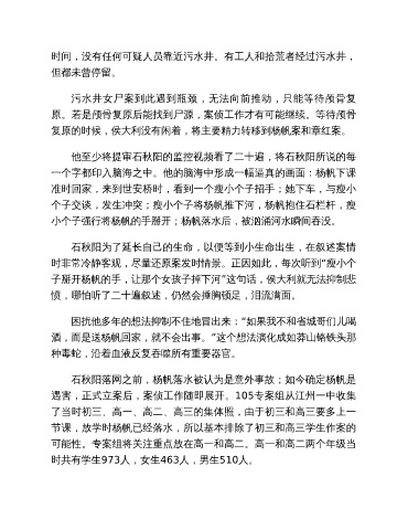 遇害,正式立案后,案侦工作随即展开。105专案组从江州一中收集