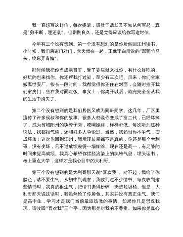 是“剪不断,理还乱”。但斟酌良久,还是觉得应该给你写这封信。