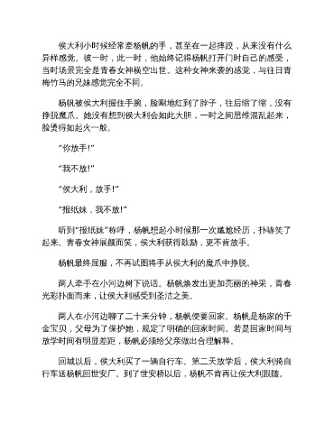 回城以后,侯大利买了一辆自行车。第二天放学后,侯大利骑自