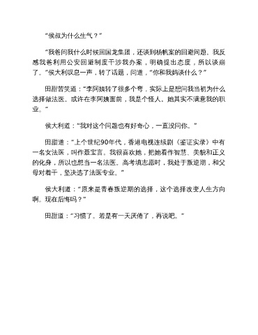 选择做法医。或许在李阿姨面前,我是个怪人。她其实不满意我的职