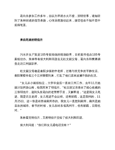 案组侦办。朱林带着侯大利和田甜去见杜文丽父母,葛向东和樊勇调