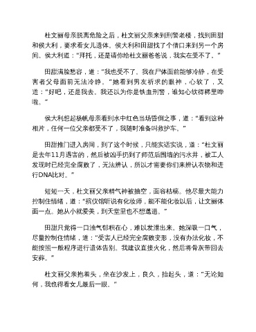 和侯大利,要求看女儿遗体。侯大利和田甜找了个借口来到另一个房