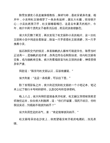 侯大利又翻了两页,再次发现了杜文丽和小吴的相片。这一次杜