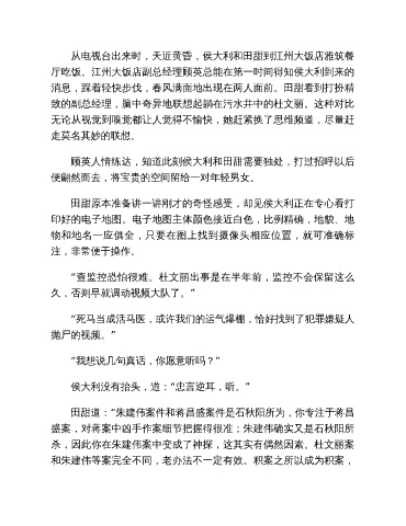 田甜原本准备讲一讲刚才的奇怪感受,却见侯大利正在专心看打