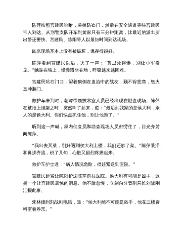 宫建民赶紧让陈阳护送陈萍前往医院。侯大利有可能是凶手,这
