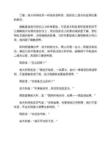 杨帆案虽然已经归入105专案组,可是侯大利在资料室里坚持不