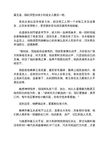 说到这里,他哽咽起来,紧紧抱住侯大利。