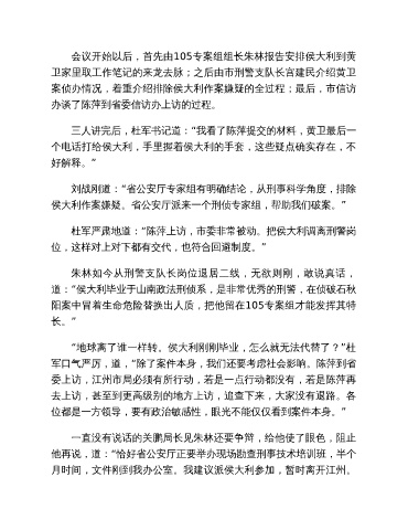 案侦办情况,着重介绍排除侯大利作案嫌疑的全过程;最后,市信访