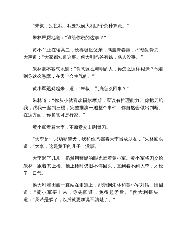 侯大利和田甜一直站在走道上,能听到朱林和黄小军对话。田甜