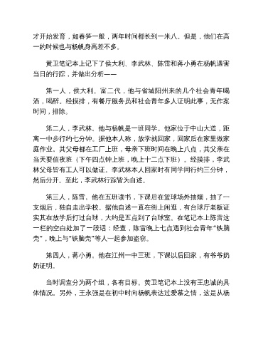 黄卫笔记本上记下了侯大利、李武林、陈雷和蒋小勇在杨帆遇害