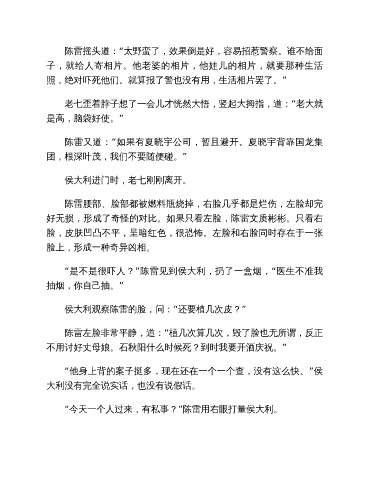 侯大利观察陈雷的脸,问:“还要植几次皮?”