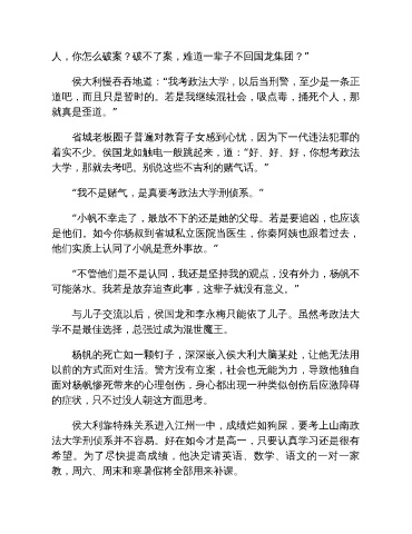 杨帆的死亡如一颗钉子,深深嵌入侯大利大脑某处,让他无法用
