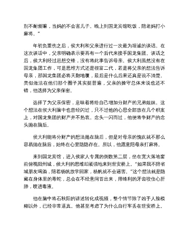 来到国龙宾馆,进入侯家人专属的倒数第二层,坐在宽大落地窗