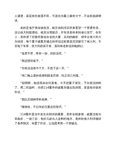老朴是省厅资深侦查员,能主动到培训班来看望一个普通学员,