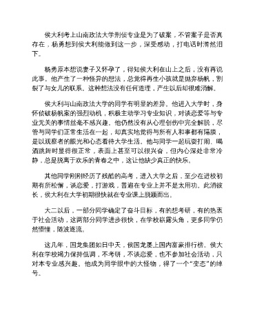 侯大利考上山南政法大学刑侦专业是为了破案,不管案子是否真