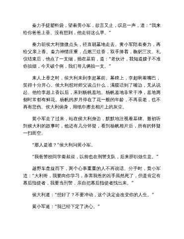 秦力朝侯大利微微点头,径直朝墓地走去。黄小军陪着秦力,再