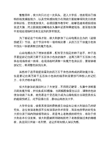 特的视觉捕捉能力,以及空间感知能力在刑侦方面能够得到充分的发