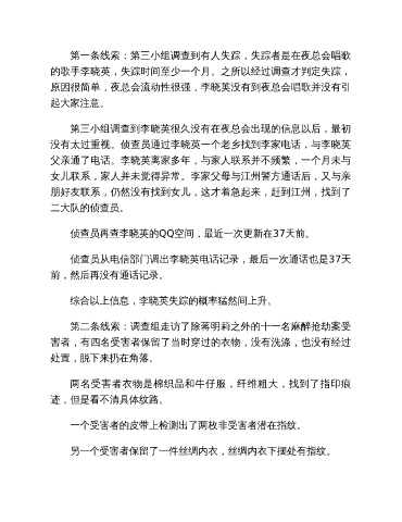 第一条线索:第三小组调查到有人失踪,失踪者是在夜总会唱歌