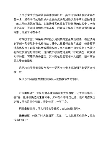 向等特征,可用于身份鉴定。其中两枚是受害者本人指纹,还有两枚