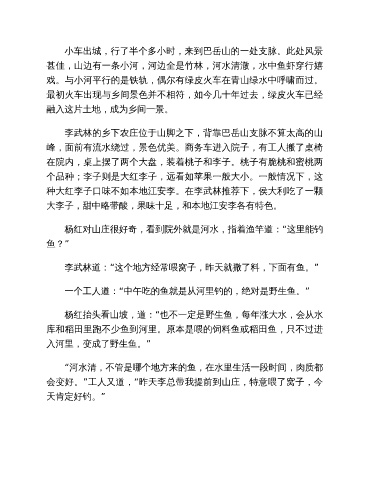 戏。与小河平行的是铁轨,偶尔有绿皮火车在青山绿水中呼啸而过。