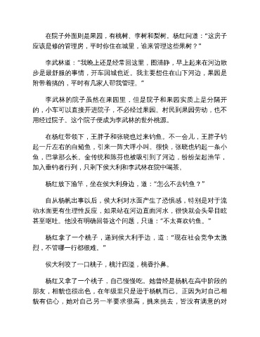 在院子外面则是果园,有桃树、李树和梨树。杨红问道:“这房子