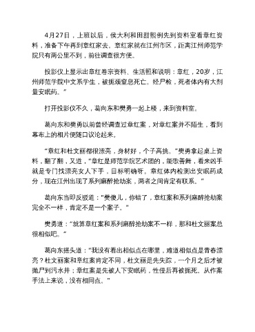 4月27日,上班以后,侯大利和田甜照例先到资料室看章红资