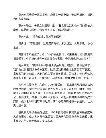 我们自然就要回归105专案组。以前是我和樊傻儿主要负责丁丽案、
